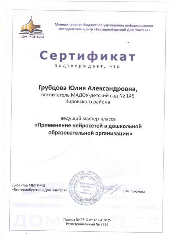 2023 - "Технология "Нейролепка" как инновационный инструмент сопровождения образования и средство реализации ФОП в художественно-эстетическом, познавательном и речевом развитии ребенка"
